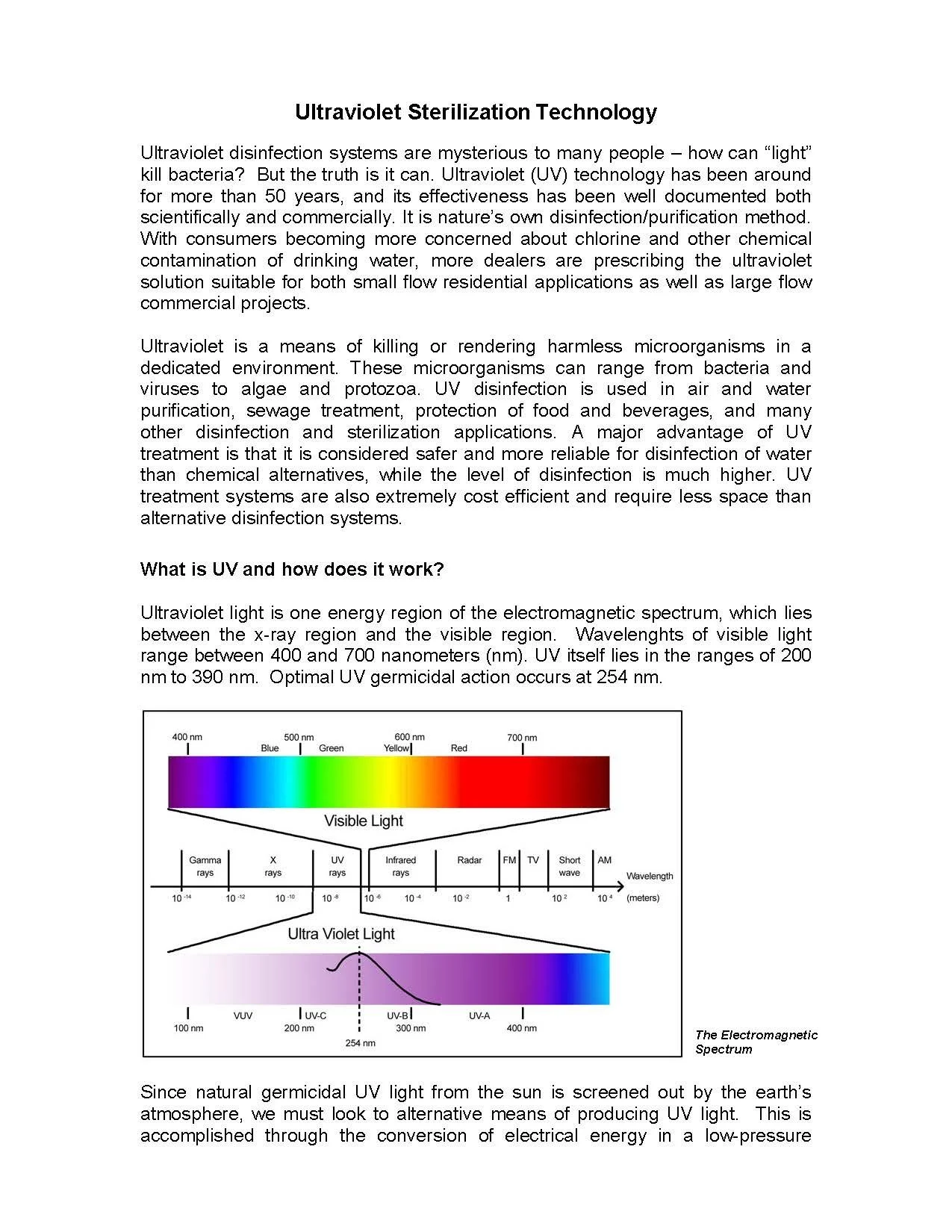 Ultraviolet (UV) light, found naturally in sunlight, is used at a precise wavelength (254 nm) to deactivate bacteria and viruses by breaking their DNA so they can no longer reproduce. The result: safe, fresh-tasting water without adding chlorine or altering flavor, odor, or color.