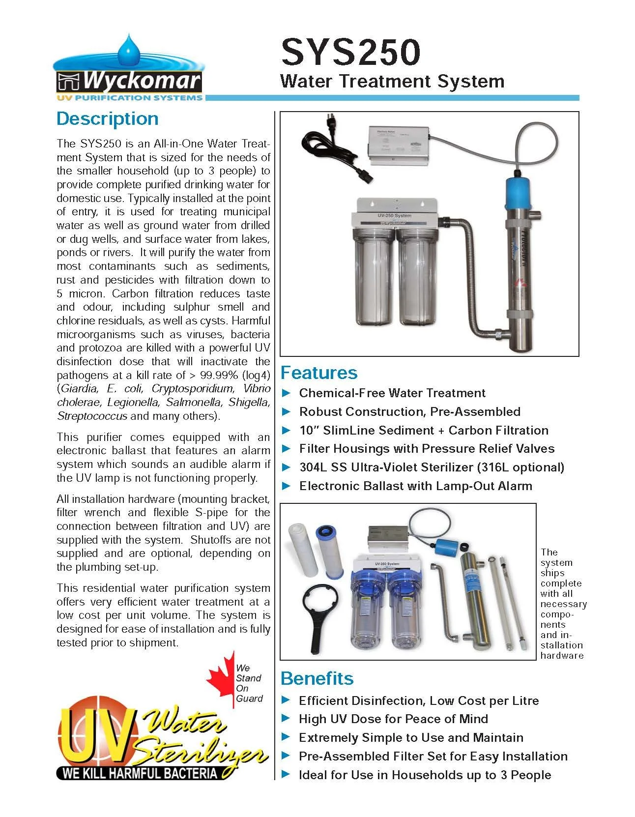 The SYS 250 is the ideal UV purification system for homes with one to two bathrooms, a kitchen, and a laundry room β delivering purified water to every tap in your home